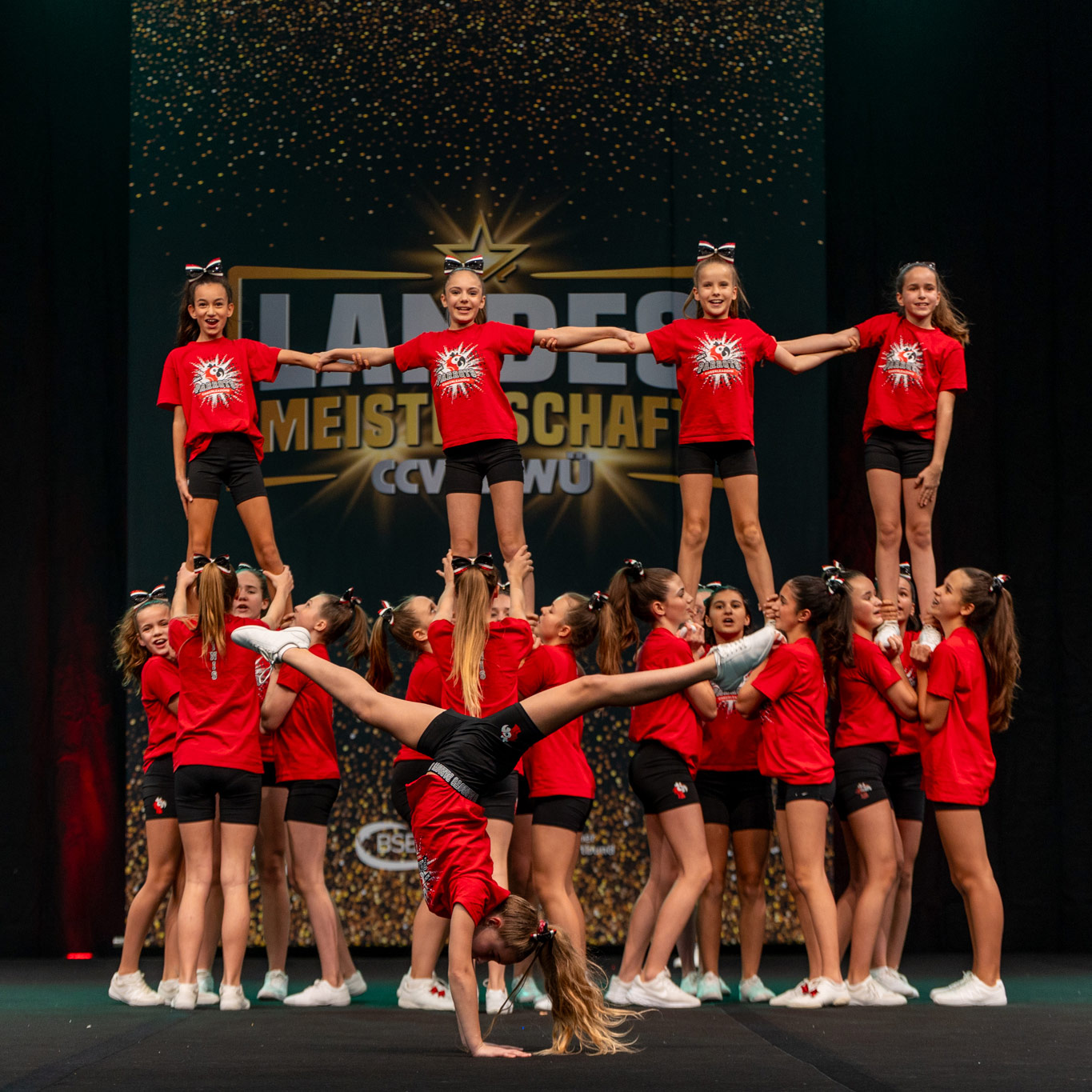 Cheerleading ist eine Teamsportart wie sie vielseitiger nicht sein könnte. Wir üben uns in Stunts (Hebefiguren), Pyramiden (Verbindung mehrerer Stunts), Baskets (Würfe), Tumbling (Bodenturnen), Jumps (Sprünge), Cheers (Anfeuerungsrufe) und Tänzen. In unserem Team muss keiner ein Alleskönner sein. Hier ist viel Platz, um seine Stärken einzubringen und vorzuzeigen. Bei uns gibt es kein zu klein, zu groß, zu dick oder dünn, denn beim Cheerleading sind viele verschiedene Positionen zu besetzen.