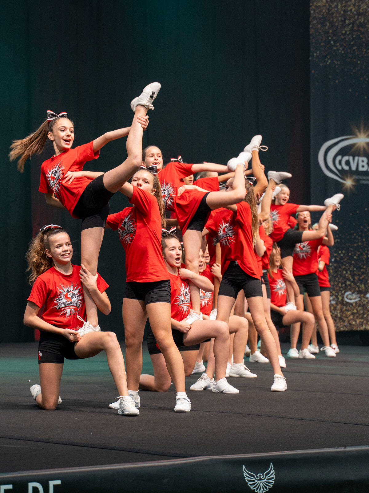 Cheerleading ist eine Teamsportart wie sie vielseitiger nicht sein könnte. Wir üben uns in Stunts (Hebefiguren), Pyramiden (Verbindung mehrerer Stunts), Baskets (Würfe), Tumbling (Bodenturnen), Jumps (Sprünge), Cheers (Anfeuerungsrufe) und Tänzen. In unserem Team muss keiner ein Alleskönner sein. Hier ist viel Platz, um seine Stärken einzubringen und vorzuzeigen. Bei uns gibt es kein zu klein, zu groß, zu dick oder dünn, denn beim Cheerleading sind viele verschiedene Positionen zu besetzen.